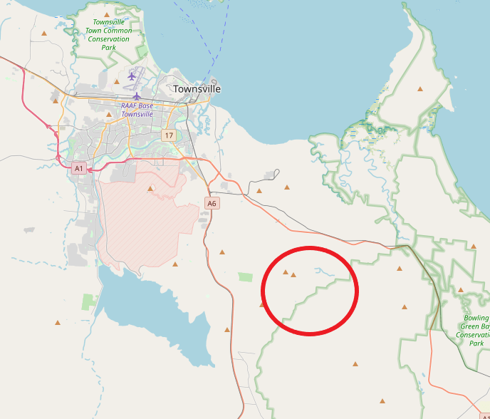 Witness states that a few of the people noticed a tall dark figure standing and observing them from about 30 metres away. Witnesses alerted other individuals of the party who all looked in the direction. Pig dogs present with the group also took off towards the animal. The unknown creature then ran off at a very fast pace over an adjacent hill, and the dogs were said to have returned to the group very soon after.